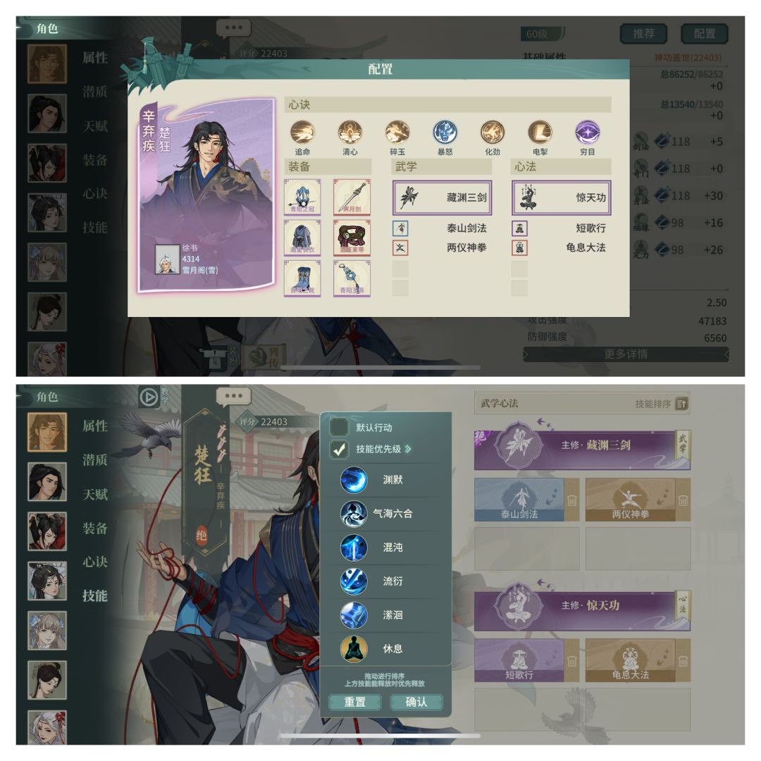 这篇攻略里的贪狼好基友我选择的是藏渊老辛,还有更适合的是张少(张少的分享我会在遁甲的分享里补上),然后最近比较新的选项是三剑闪避剑师姐。贪狼也不需要依赖通玄位了,可以在配了副C甚至3C的基础上,配个功能位,比如压阵张良,防御盾月,控制纳兰。