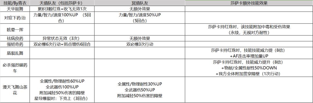 1:了解莎萨卡技能对天值队友的额外增益效果,并在配队时充分利用;