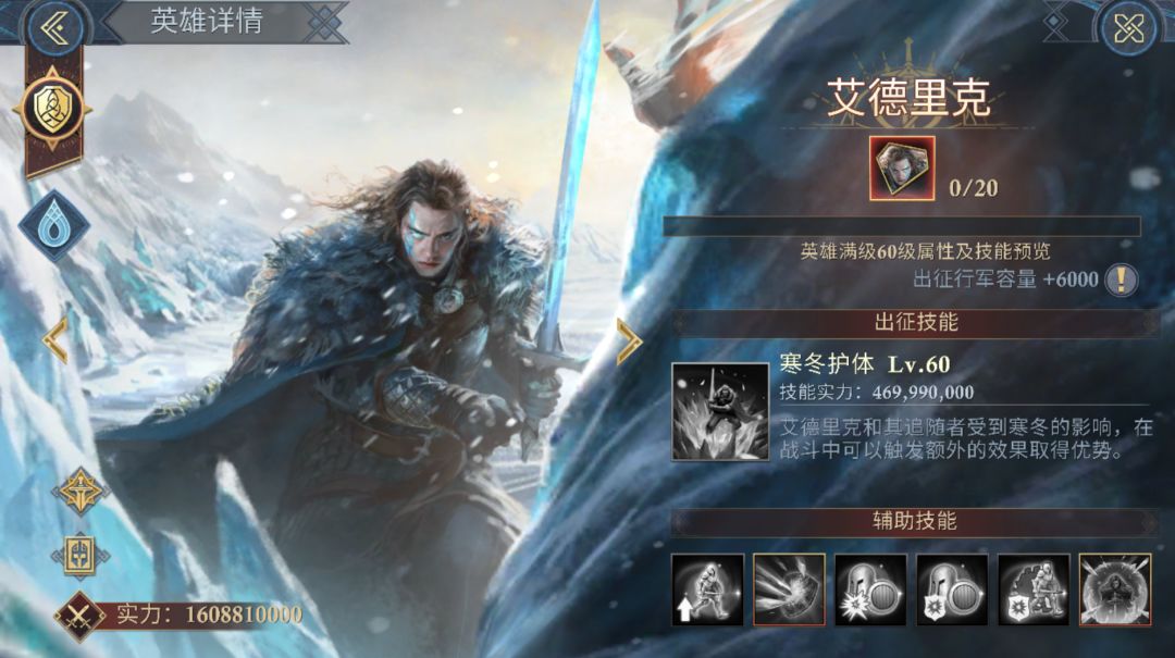 出征技寒冬护体可使最高等级步兵队列及随机队列(骑兵、弓兵)施加寒冬护体,是目前首个拥有额外队友保护能力的英雄。如果敌方身上有冰冻效果,可额外降低目标对己方寒冬护体的伤害,可大幅提升己方核心位坦度。在解锁凛冬冲击后,拥有寒冬护体的单位在状态结束时可概率发起一次额外攻击及有概率额外造成水元素伤害,可使己方核心队列获得额外的输出频率。