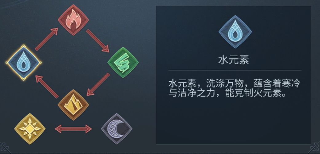 元素存在相互克制的机制,水元素队可对火元素队造成额外的压制效果。目前只推出了水元素、火元素战斗英雄,在元素克制方面,水元素会更有优势。