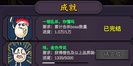 虽然蛋蛋2是个挂机游戏,但是如果想要玩得好,快速发展,还是需要手动肝boss的,boss装备掉率更高,还有各种材料(金矿石、铁矿石、金刚石、江湖令、高级藏宝图)等奖励,而且累计击杀boss1万只,还有总计15%的闪避属性加成。