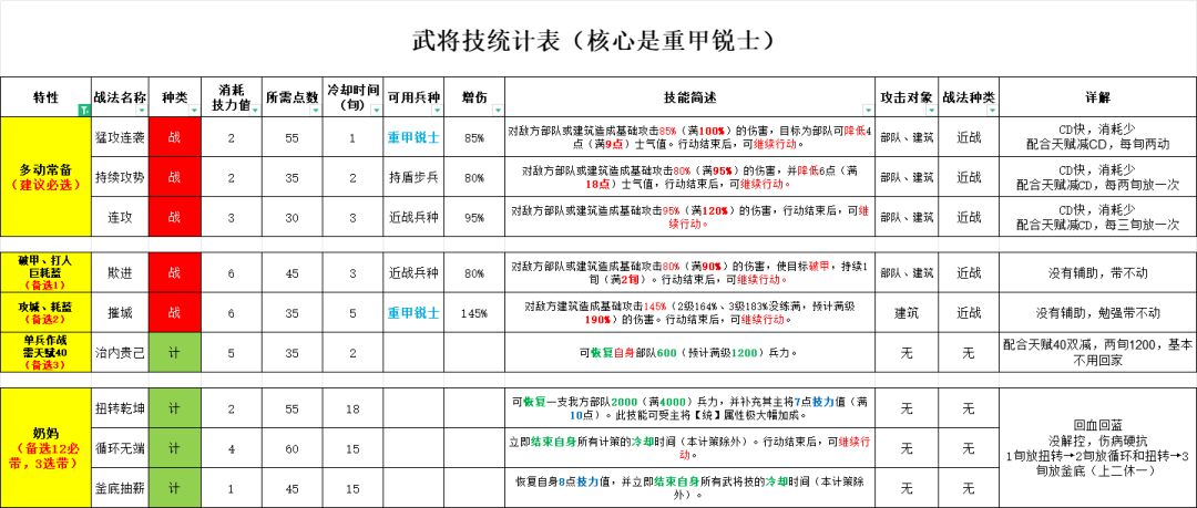 武将特性-增伤统计 1旬5动重甲锐士自建分享