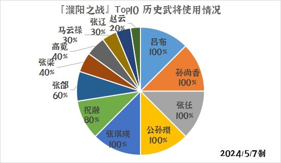 同时,花花也为大家整理了一下本次濮阳之战前十玩家的历史武将使用情况供大家参考: