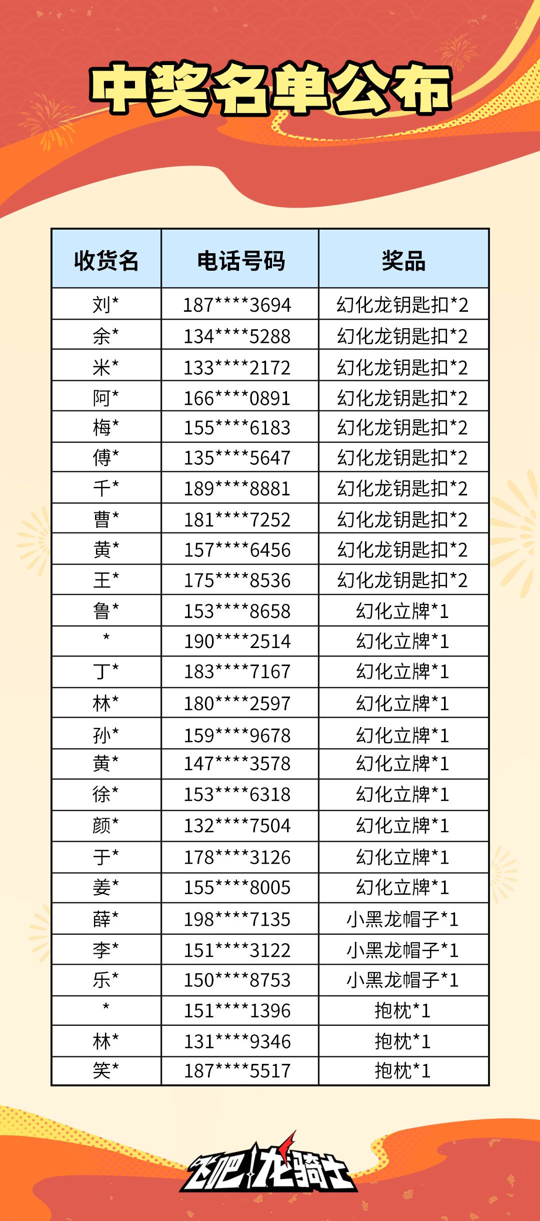 获奖公示 |立牌、帽子、幻化龙抱枕送送送!