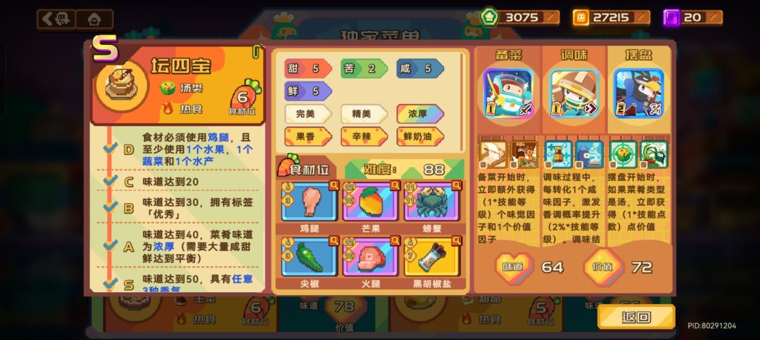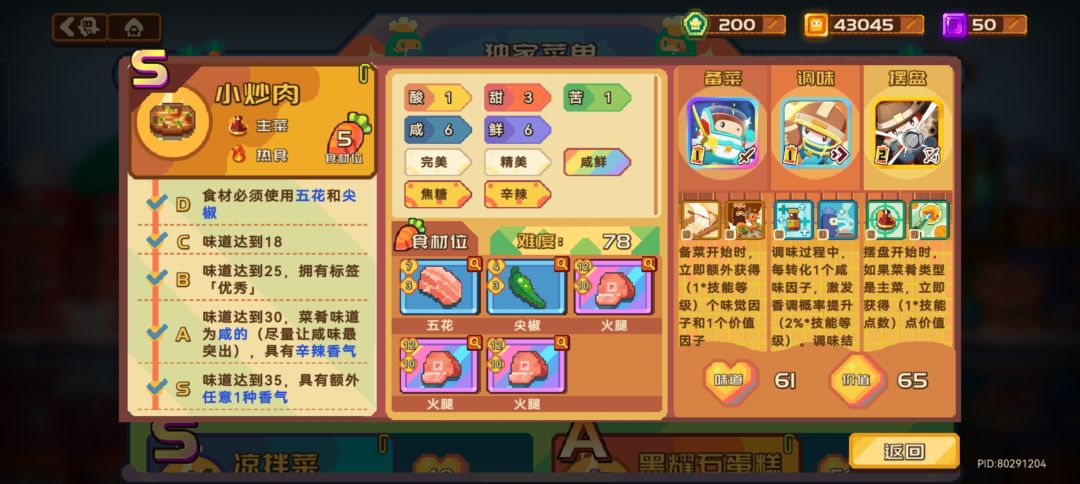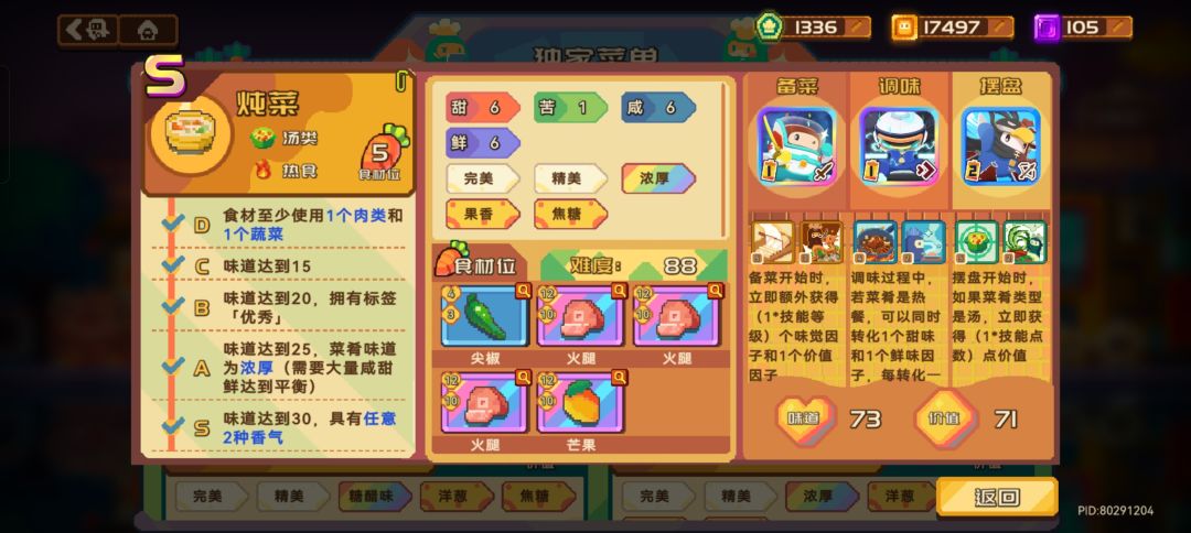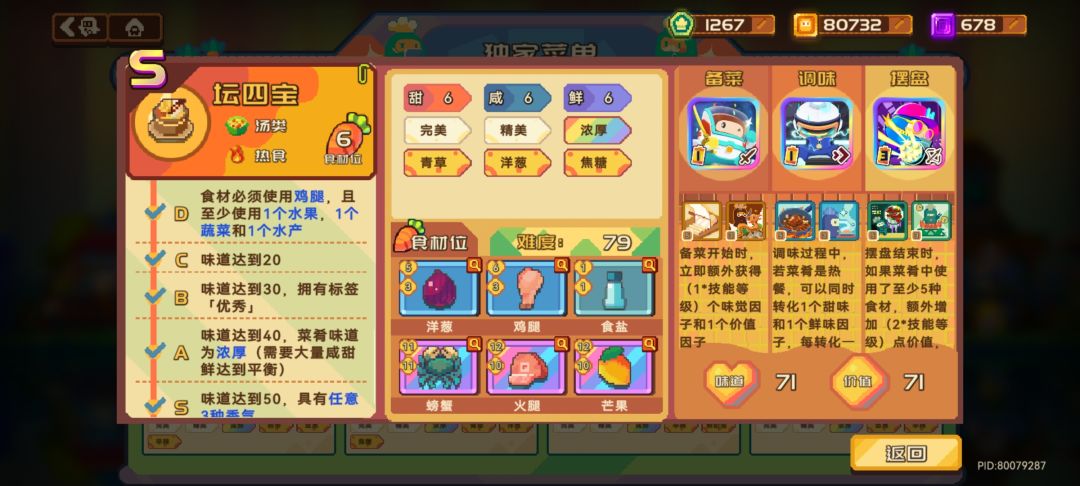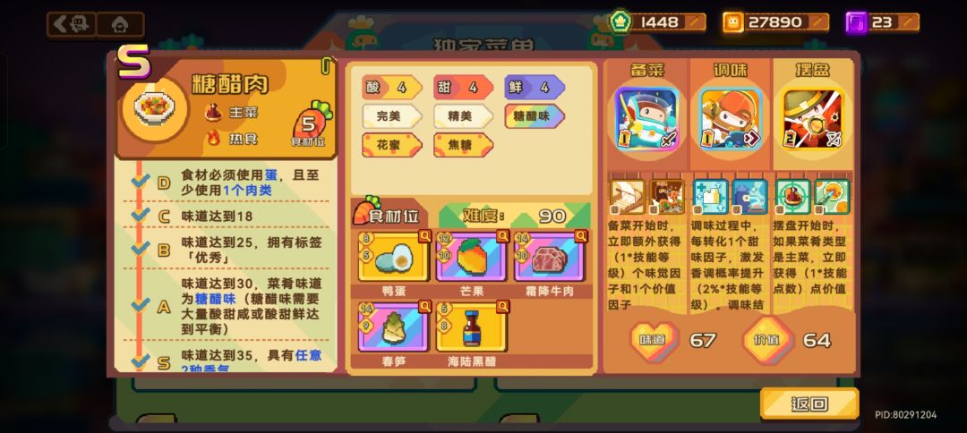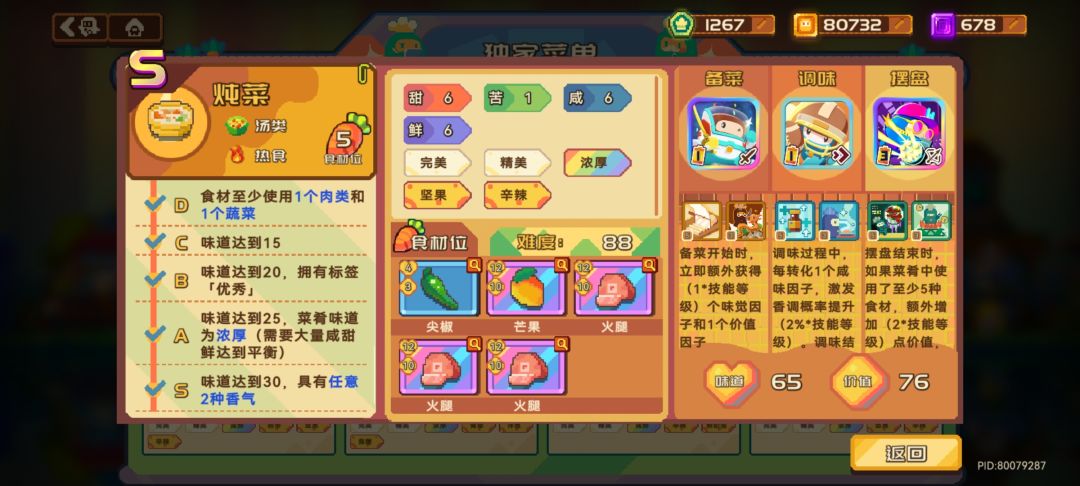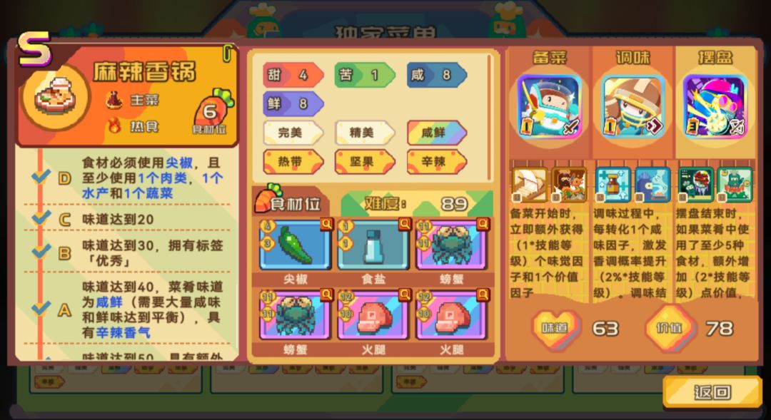 黑曜石蛋糕和黄玉酥非常难兼顾S级和高价值,这里不推荐大家去做,做了最后也很难应用到实际开店中。不如做上面价值高还容易刷S级的菜品。