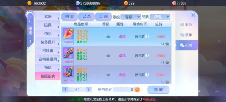 Hello,大家好,我是挽深秋,很高兴又到了大家见面的时间,那么今天的节目,我们将要围绕着跨服拍卖开始,今天我们来鉴赏一下跨服拍卖的四件神装,让我们一起来看一下吧。