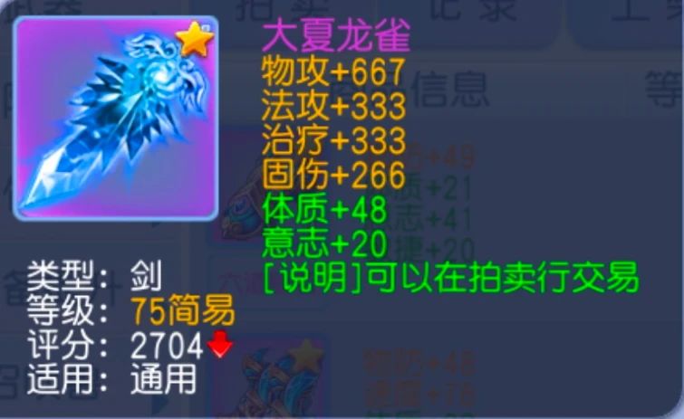 首先这件装备的基础属性虽然不是全满,但是也无限接近于全满,这就代表着这把武器可以作为全职业通用,无论是输出还是辅助都可以,那么这时候肯定会有很多人来反驳你看他的附加,他是只有体质加82,那么各位小伙伴,对于没有紫色简易武器的人,一个无限接近全满的伤害,带来的加成已经非常高了,当然肯定没有输出附加属性更完美,但是2万多淘换来一个短暂的提升,还是比较值得的。另外我还要再补充一句,刚才说的话有一点不严谨,那就是全职业通用,准确来说应该是治疗职业神器,输出职业可用,封印职业不可选!