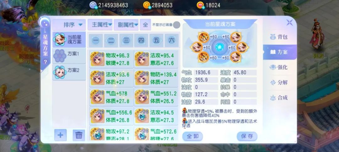 接着就是给宠物搭配星魂。除了高额的属性以外,首先最重要的就是星魂的套装加成!