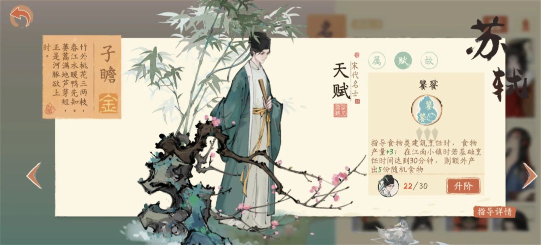 👉游戏中有多种角色供玩家挑选,比如苏轼、李清照、柳永、陆游、唐婉选择一个符合自己喜好和风格的角色。