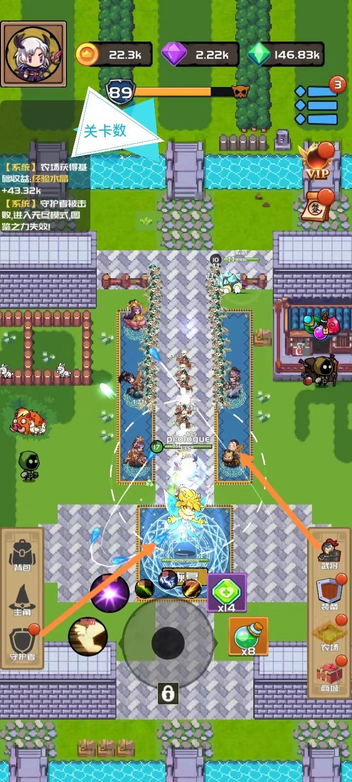 新手入坑游戏前期主要分为俩大部分. 通关(自动塔防) 英雄培养(可操控角色)