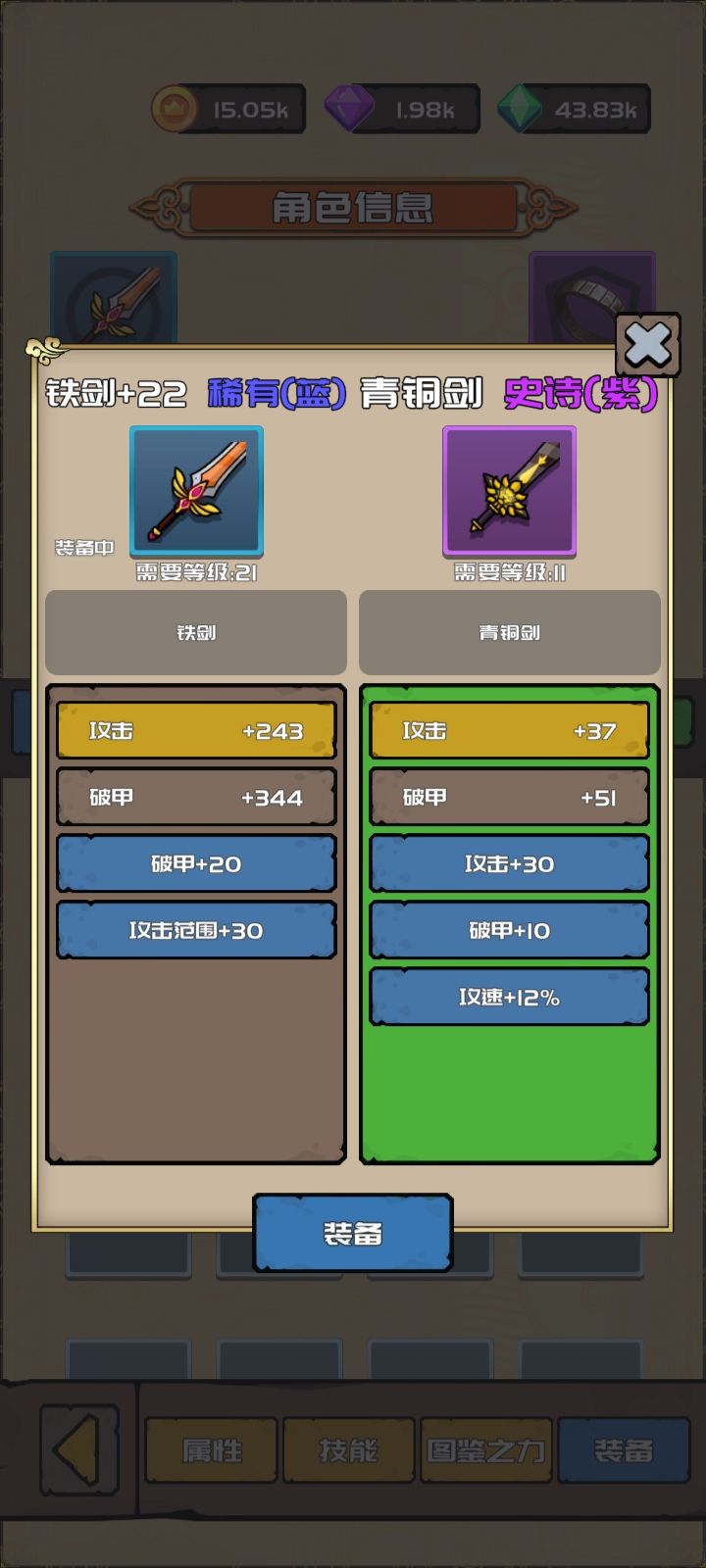 游戏中不同装备有不同的级别,级别越高基础属性越高。