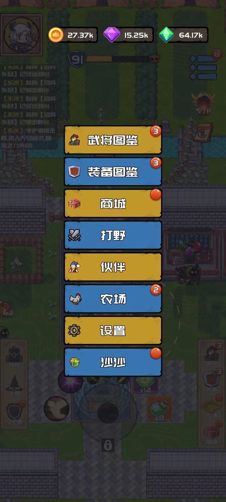 最后游戏界面右上角 像“设置”图标得菜单点击,可以看到非常多得功能包括武将升级,农场离线收益。