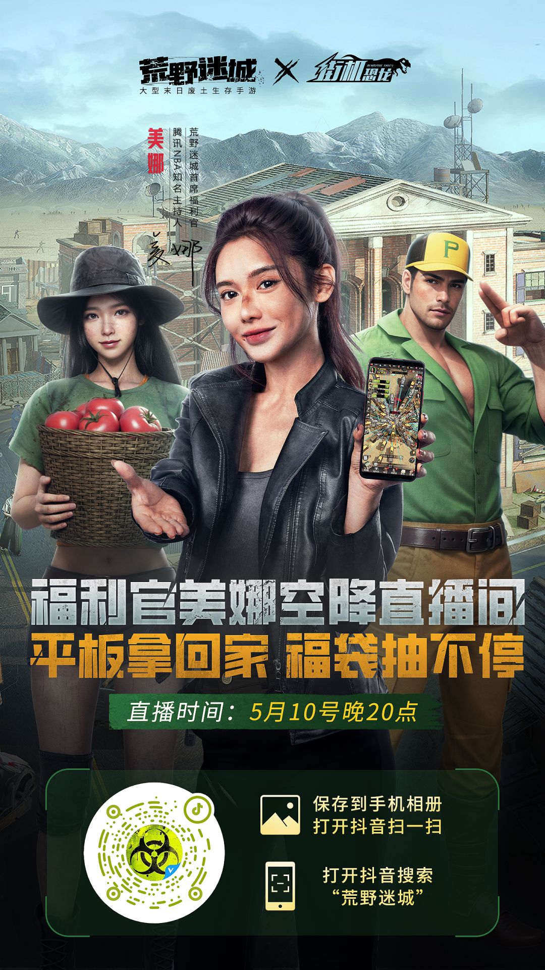 5月10日晚8点整,福利官美娜将空降《荒野迷城》抖音官方直播间,给大家送惊喜啦![庆祝][庆祝][庆祝]