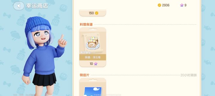 1.找神秘商人朵朵买浮云卷食谱;需要注意的是浮云卷食谱需要⭐50个许愿星⭐需要稍微准备一下,原味浮云卷和青、蓝、紫色浮云卷的一星利润是亏损的,红、橙、黄、绿色浮云卷的利润也只有20,比起赚钱这个食谱还是收藏价值更高。
