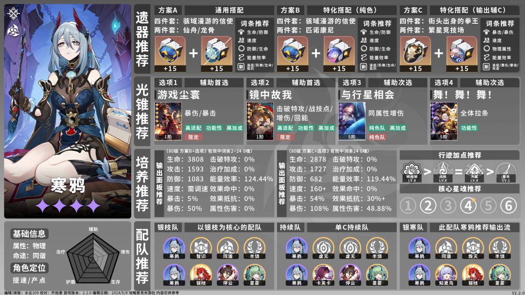 1、寒鸦的速度需要根据队伍中的主C进行调配