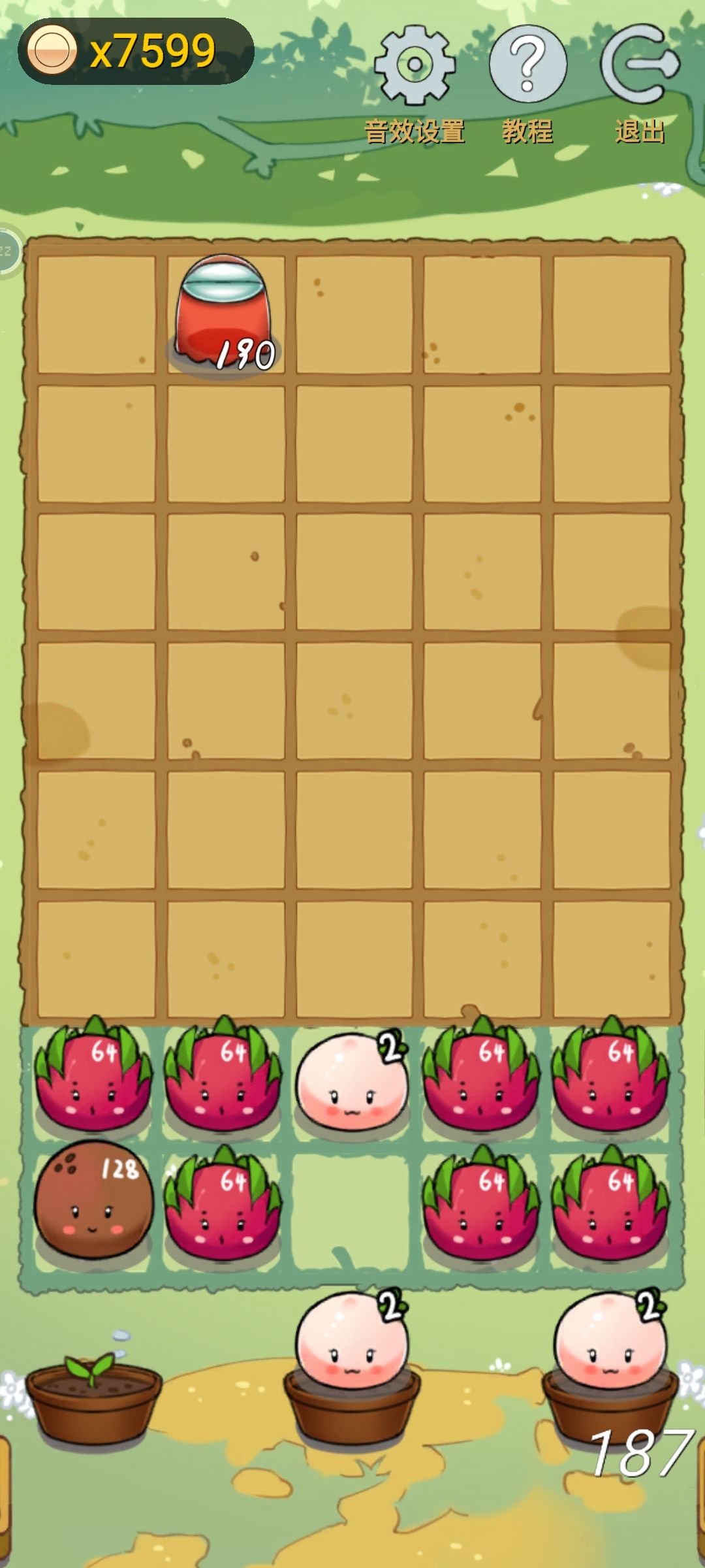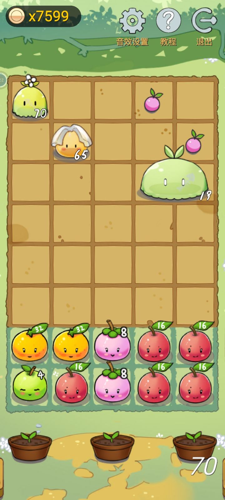 总结一下经验吧,在游戏过程中不要急着合成更高的植物,要平均合上去,合到64就可以停了,把上排4个格子都是64的,中间那格子可以是16或者8的都可以(因为中间的史莱姆出现的都是横跨两格的大史莱姆,所以需要的防守力比较小),然后下面那排也要保持至少2个格子是64的,后面的话需要看情况才继续往上合,优先下面那个排合个128的作为机动调整位置,看看哪一竖列需要就调过去,具体的可以看看上面的图列,希望可以给兄弟们一个思路