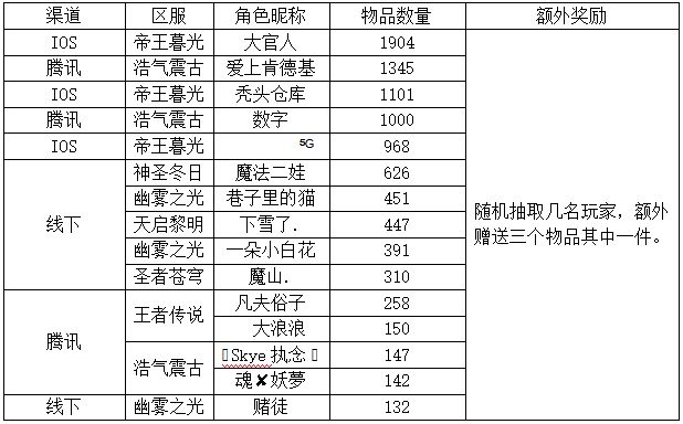 恭喜以上玩家获得奖励,请各位玩家注意查收官方邮箱系统消息,我们将在活动结束后7个工作日内发放奖励。再次感谢大家的参与和支持。