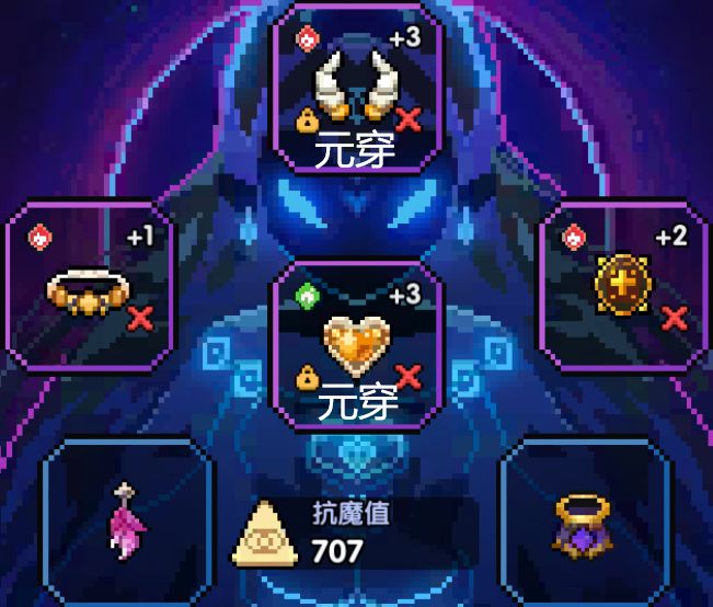 有啥装啥,蓝色的是散件,不用升级;角和心有元穿属性可以留着,其他位置随便,平均升级,抗魔值达标开启星海岛。