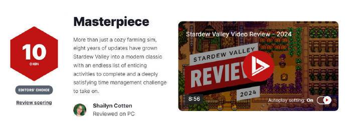 星露谷物语获IGN10分评价