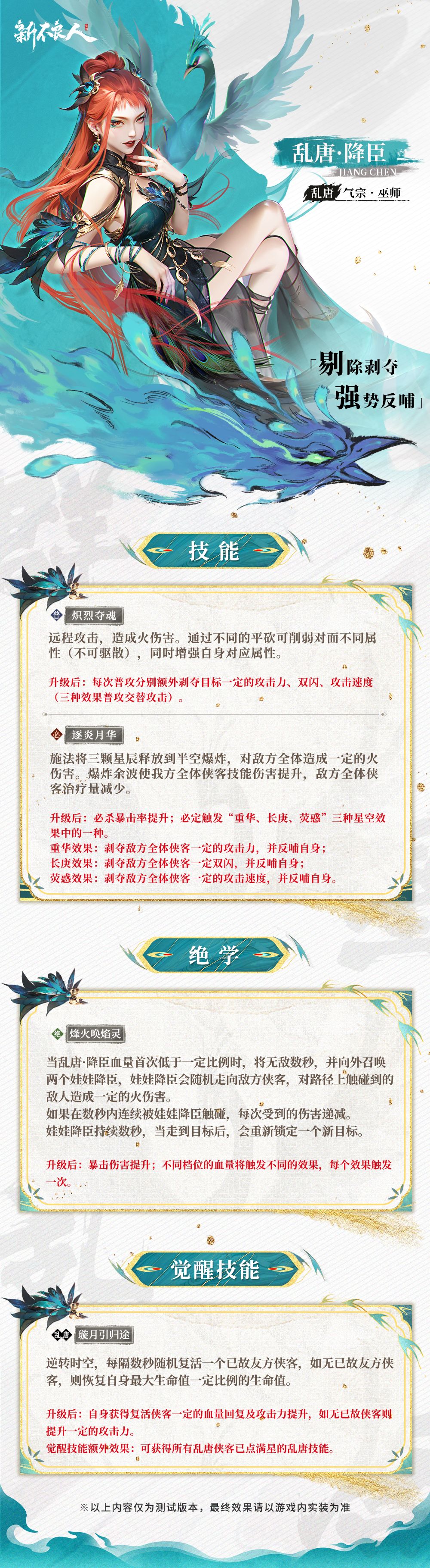以上就是SP降臣的技能介绍啦!作为周年庆限定的超强势气巫侠客,不论是剥夺属性还是复活侠客,SP降臣都是少侠们组建配队的不二选择!