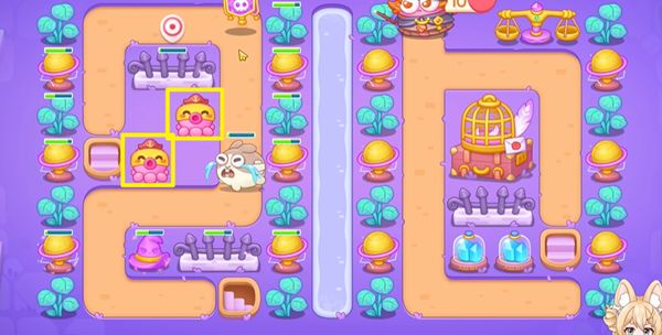 1、阿波与魔法宝藏第28关直接建造两个满级章鱼在如图所示的位置,可以快速炸掉旁边的全部小建筑物。