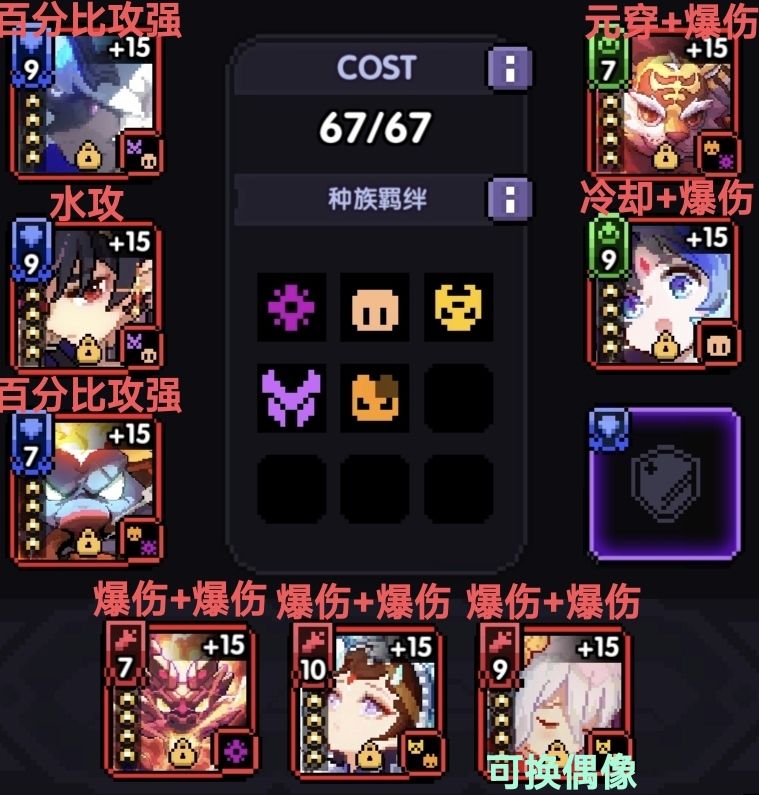 ②搭配2:不带“装备-龙牙”打的话,建议“情缘”换“偶像”。带“装备-龙牙”打的话,建议用“情缘”,且开局卡30s具体操作见上期攻略,链接: