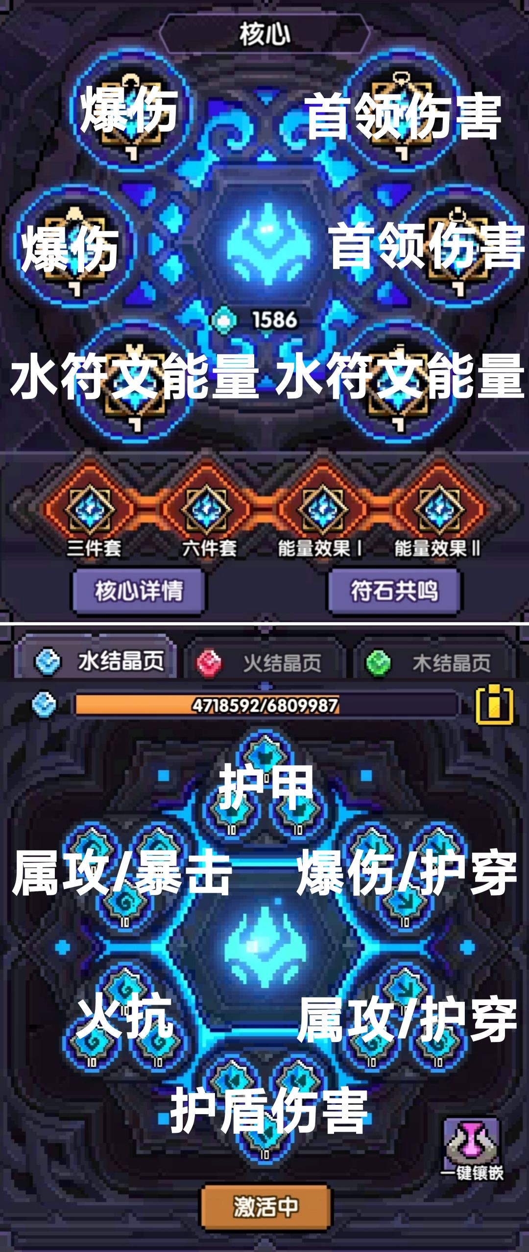 ②尽管马游爆伤稀释特别严重,但披风和头部的核心(大符文),建议还是爆伤,收益仍比水攻高不少(以基础1250爆伤和4300属攻计算,一个爆伤仍比一个水攻强1.16%)