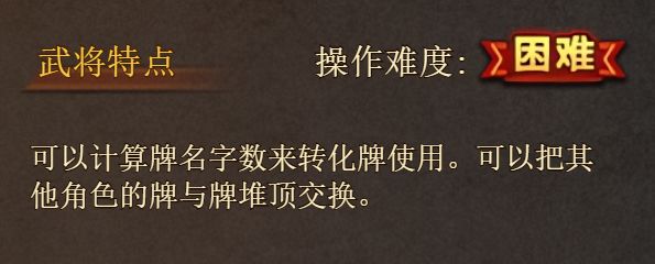 这个技能的用法比较多,可以过牌也可以控制。操作方式和黄老头的〖观虚〗很像,选择目标,观看其字数最多的手牌以及牌堆顶的牌,然后进行等量交换,只能看牌堆顶的牌不能调位置。一个角色手牌中字数最多的牌一般来说是锦囊或者是装备,算是比较重要的牌。或者全是基本牌,那么操作空间更大,可以根据情况进行调换。注意,族钟繇当前回合使用过牌的牌名字数最大值越大,结束阶段〖诫厉〗能观看牌堆顶的牌越多。 〖诫厉〗使用起来比较灵活,比较实在的玩法就是看自己换好牌,族钟繇可以把手牌调整成全基本,利用〖诫厉〗给自己换上字数合适的牌,后续更好地凑字印卡提高收益,在这个过程中可以把基本控给对手,降低对手裸摸的质量。或者就是看对手,破坏对手的关键牌或是打乱牌型,下家是队友的情况下还能实现传牌的操作。由于只能看牌堆不能调位置,这个技能的强度还是比较尴尬的。玩过黄老头的小伙伴应该有这个体会吧,光控牌拆不了的时候强度真的一般,现在的武将过牌比较大,简单的调牌完全控不住。