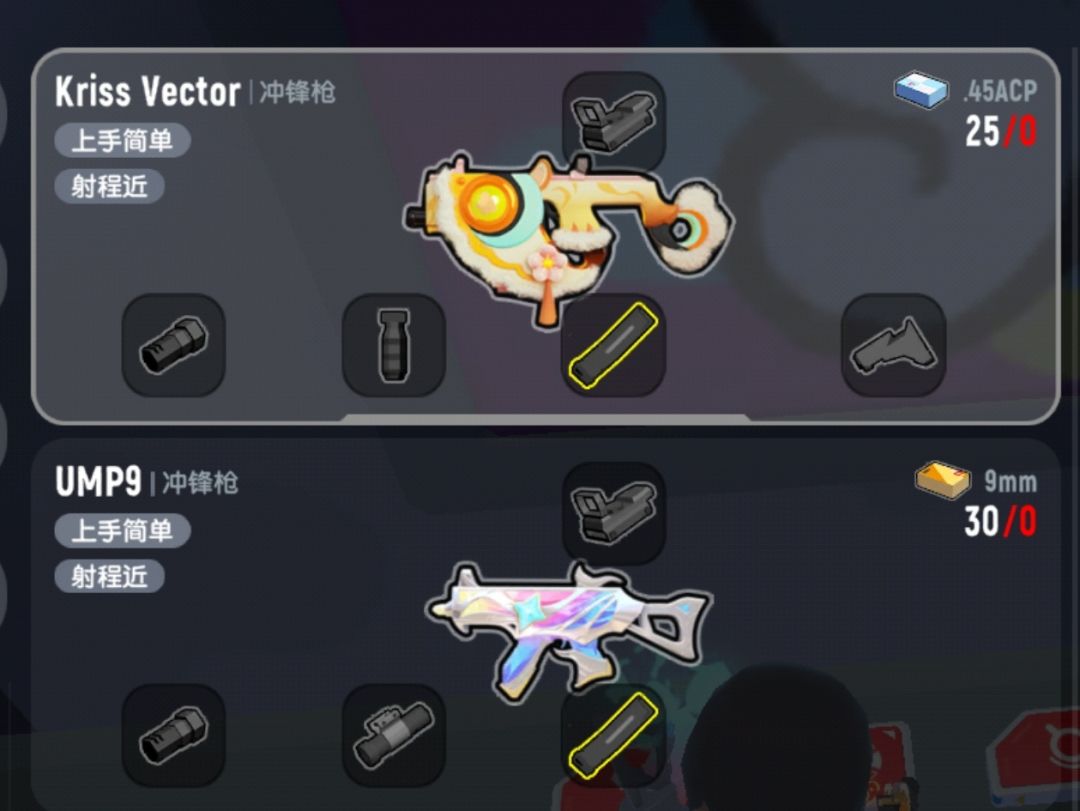近程:能量加速机枪、UMP9、Kriss Vector、能量双枪、P90、DP-28、M249