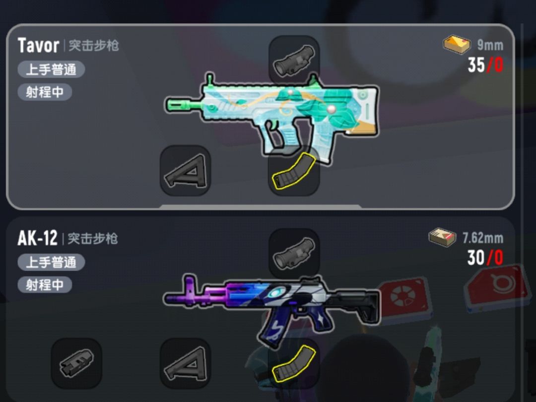 中程:Tavor、QBZ/SCAR-L、M16A4、AK12、Mini14、SKS、SLR、M416
