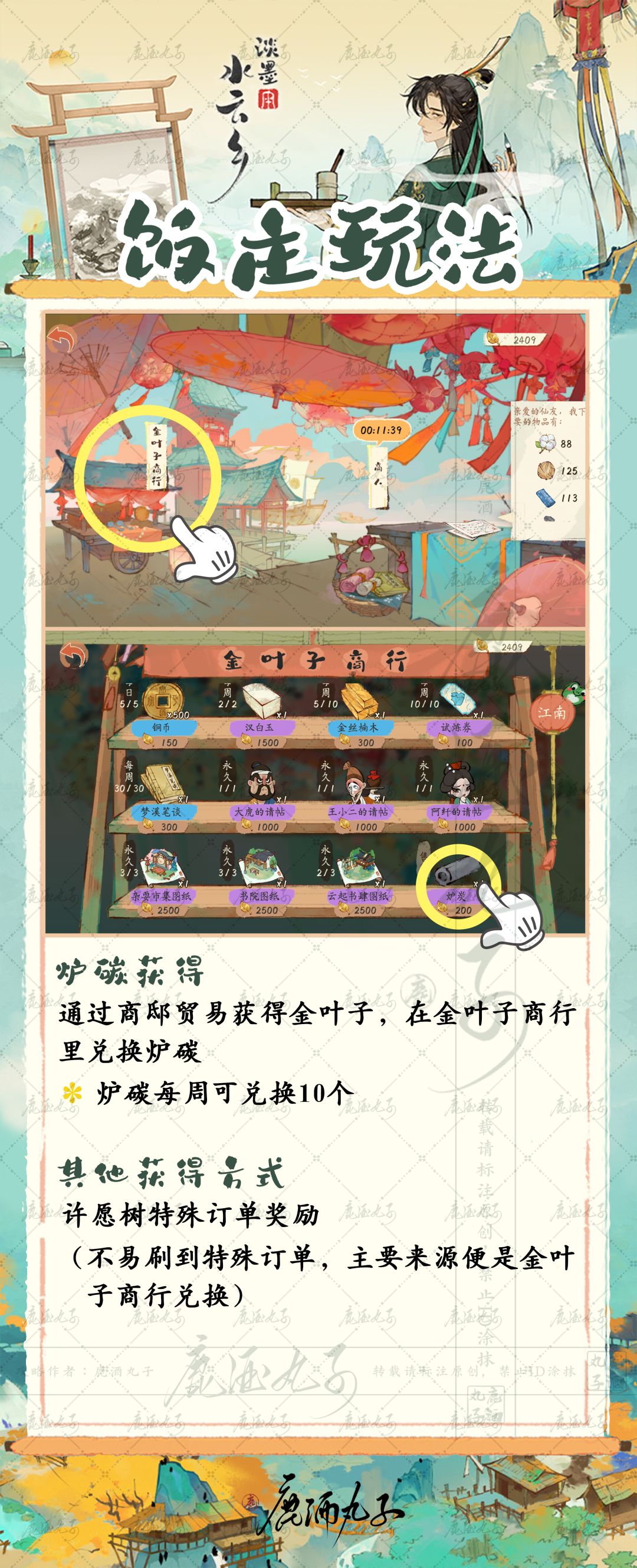 🌸通过商邸贸易获得金叶子,在金叶子商行里兑换炉碳