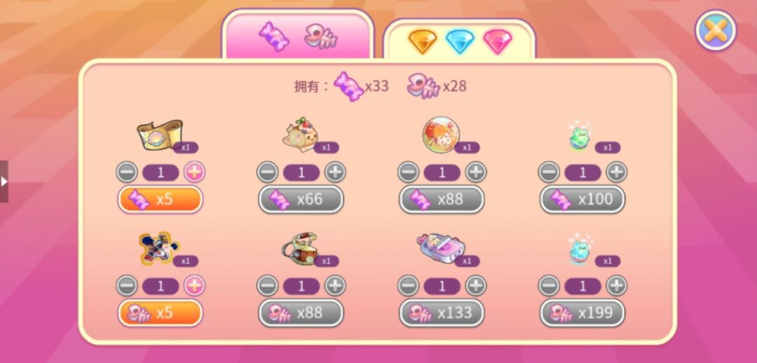 目标:收集糖果及稀有红钻。