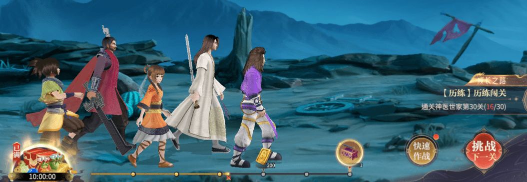 首先我们要注意一个很重的点,游戏内的各种功能是根据角色的阅历等级来开启的,各个功能的衔接点主要是通过提升角色阅历等级来进行的。目前游戏内只有领取挂机奖励、快速作战、挑战主线关卡三种方式能获得阅历等级升级经验。