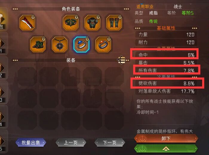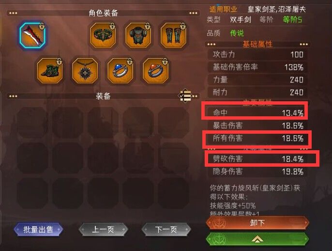 以下画的三个词条是主要的,剩下的属性(暴击,爆伤,技能伤害,击退伤害,对单伤害有更好