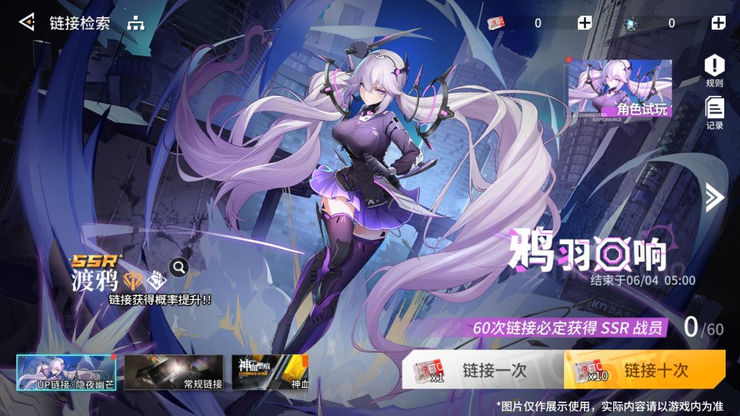 2.「鸦羽回响·渡鸦」UP链接概率提升,180次链接必得UP角色「渡鸦」