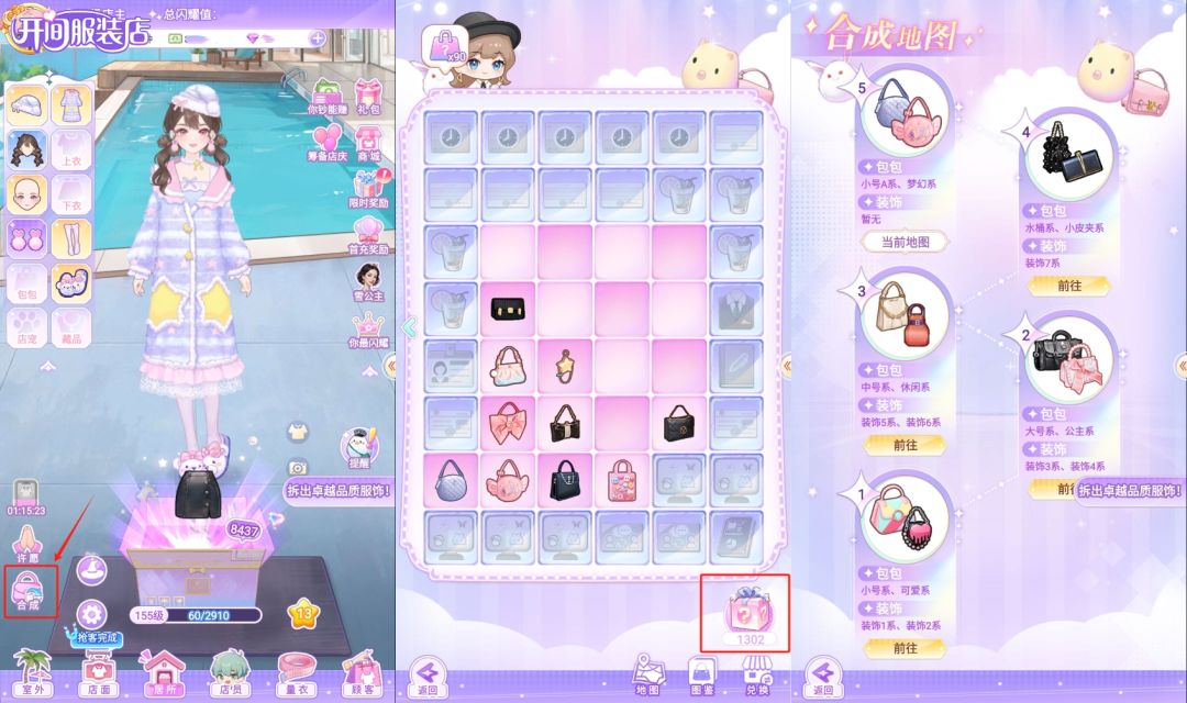 当然小号系的包包也绝不仅限于展示的这五款,各位店长还可以通过合成,解锁更高等级的包包哦~
