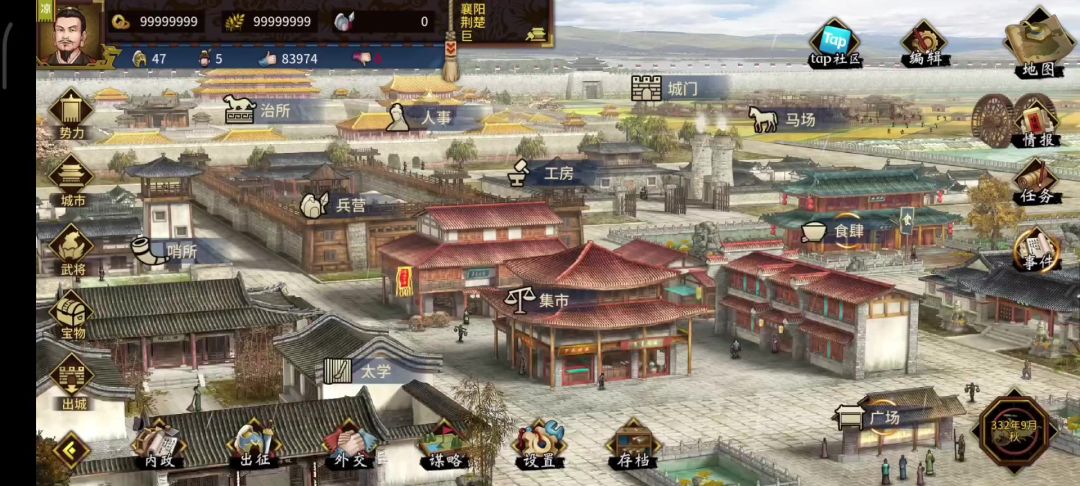 2.其余城也都建满(大城),(港口和关卡都是默认小城-虎牢和剑门是巨)