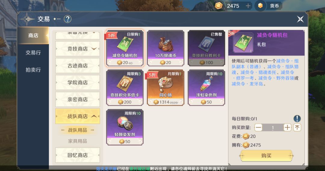 战队商店每天可以买一张随机的减负令,话说大家的战队等级都多少级了呢?战队不仅能获得积分兑换道具,还能获得额外的属性增益,还没进战队的魂师抓紧了哦~