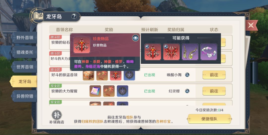 并且,战斗区的BOSS还有机会额外掉落红色奖励,可能获得绝品首饰兑换材料和蓝色饰品。