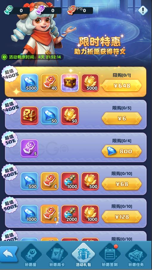 4、新增超能晶钻购买的中级祈愿券,助力旅行者们获得四星符文