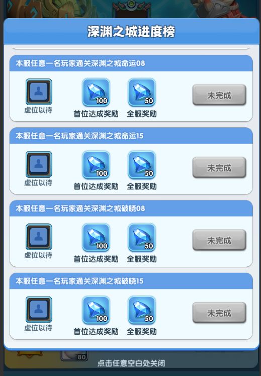 3、 深渊之城进度榜增加,榜单虚位以待!