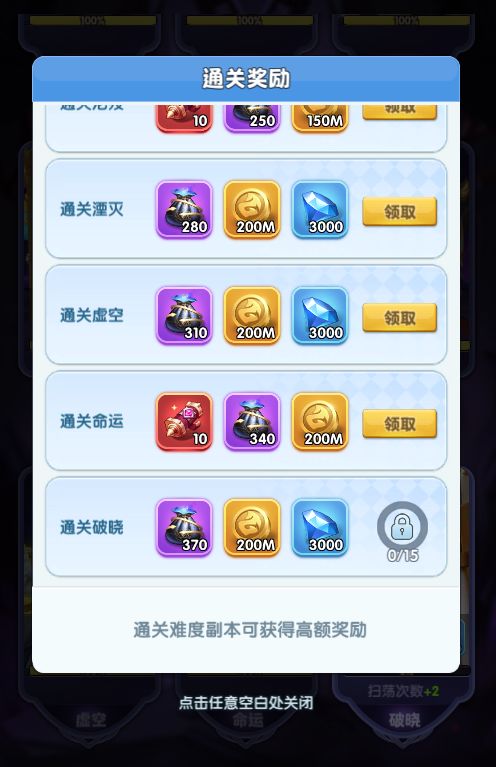 2、 新增了通关挑战奖励