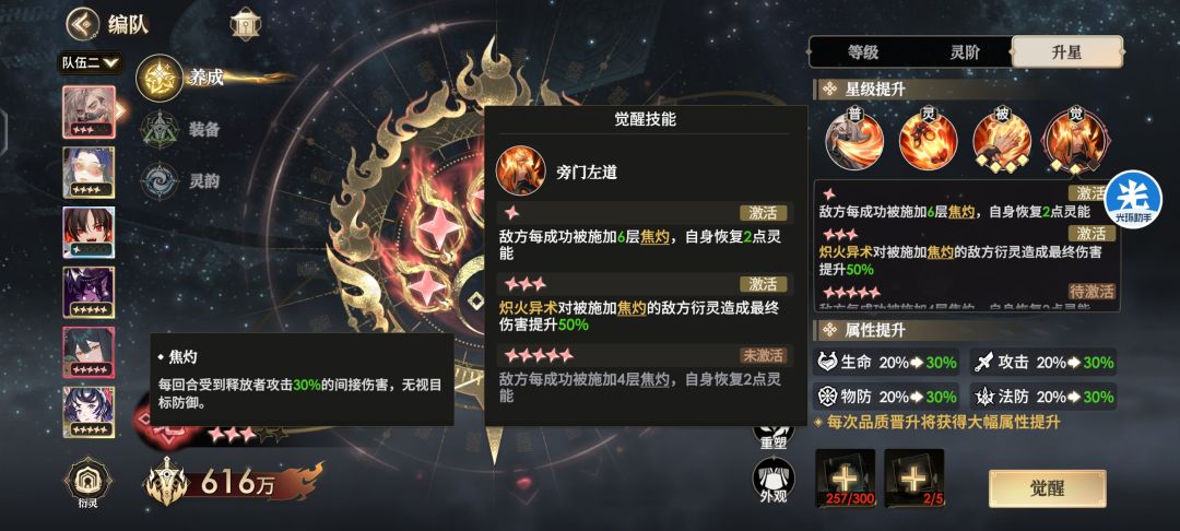 前期养成,便是围绕这两个人来养成,二者一起养上去,火队是均衡队,不需要极限拉一个,但注重一点,铁扇没有绝三之前,芭蕉扇不要三星,纯属累赘,而陈奇五星就能保证每回合6焦灼