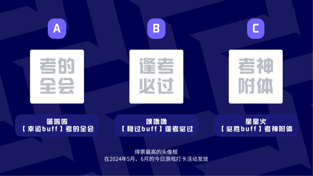 得票率最高的 buff 将被制作成头像框在今日游戏 5 月、6 月打卡活动发放哦!