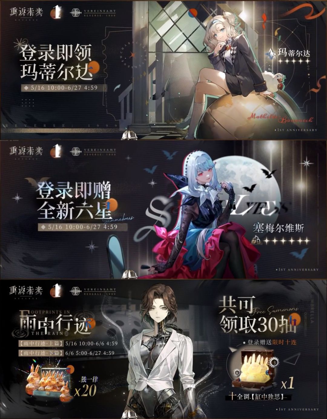 1. 登录送五星玛蒂尔达、六星塞梅尔维斯:5/16 10:00-6/27 4:59