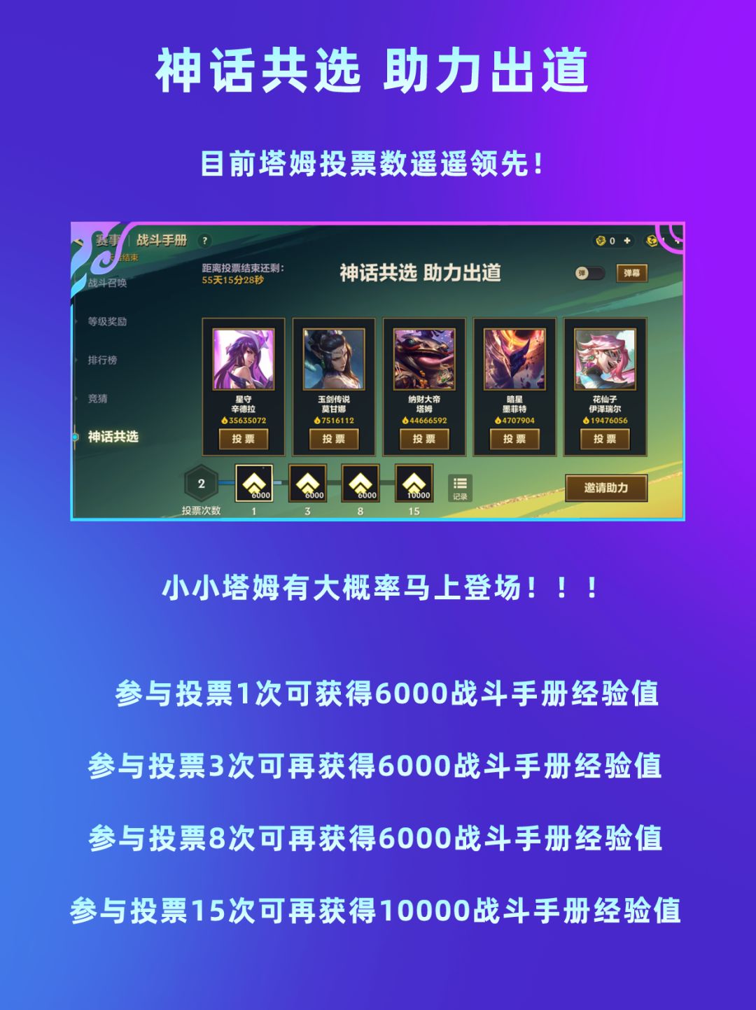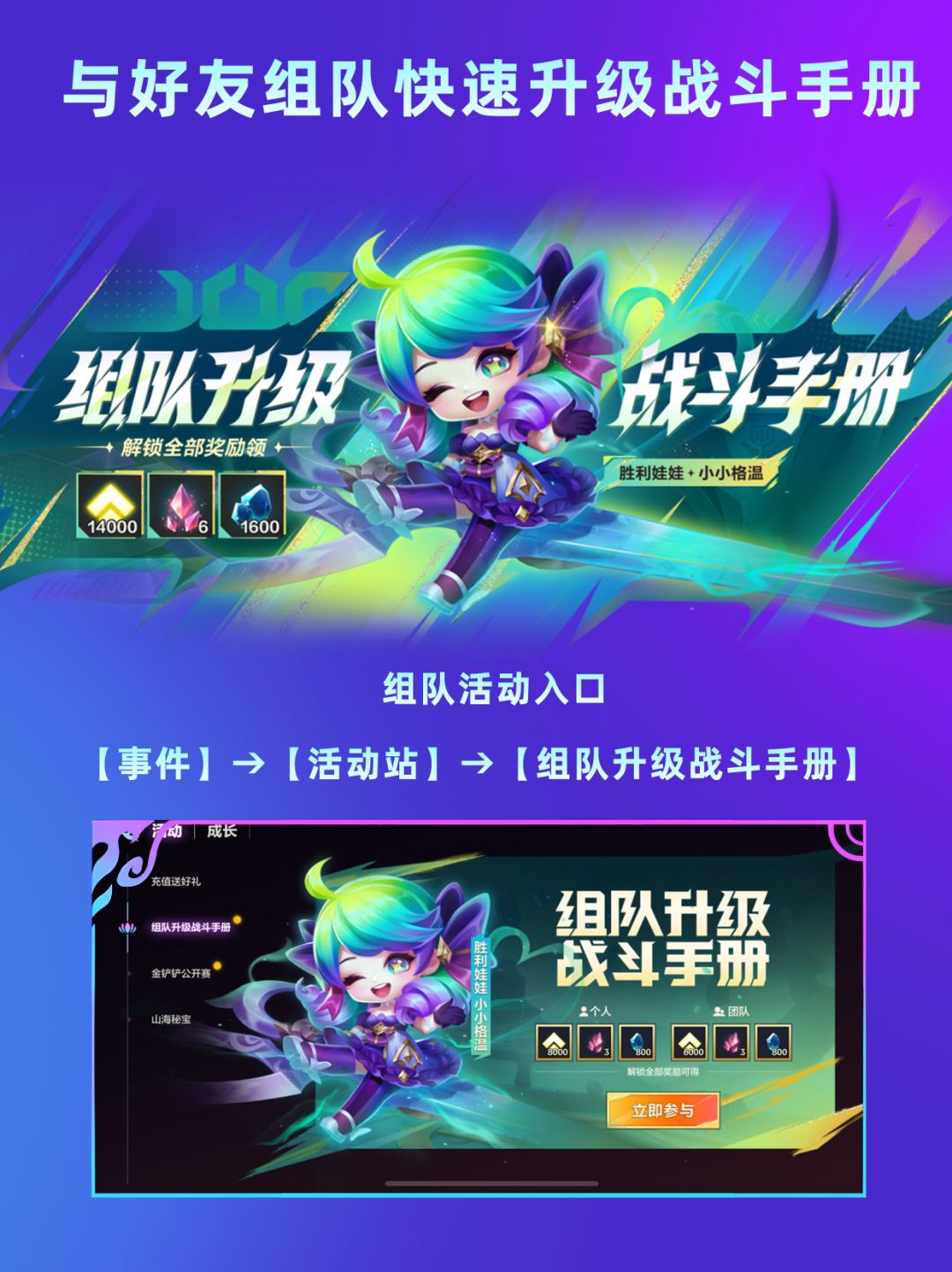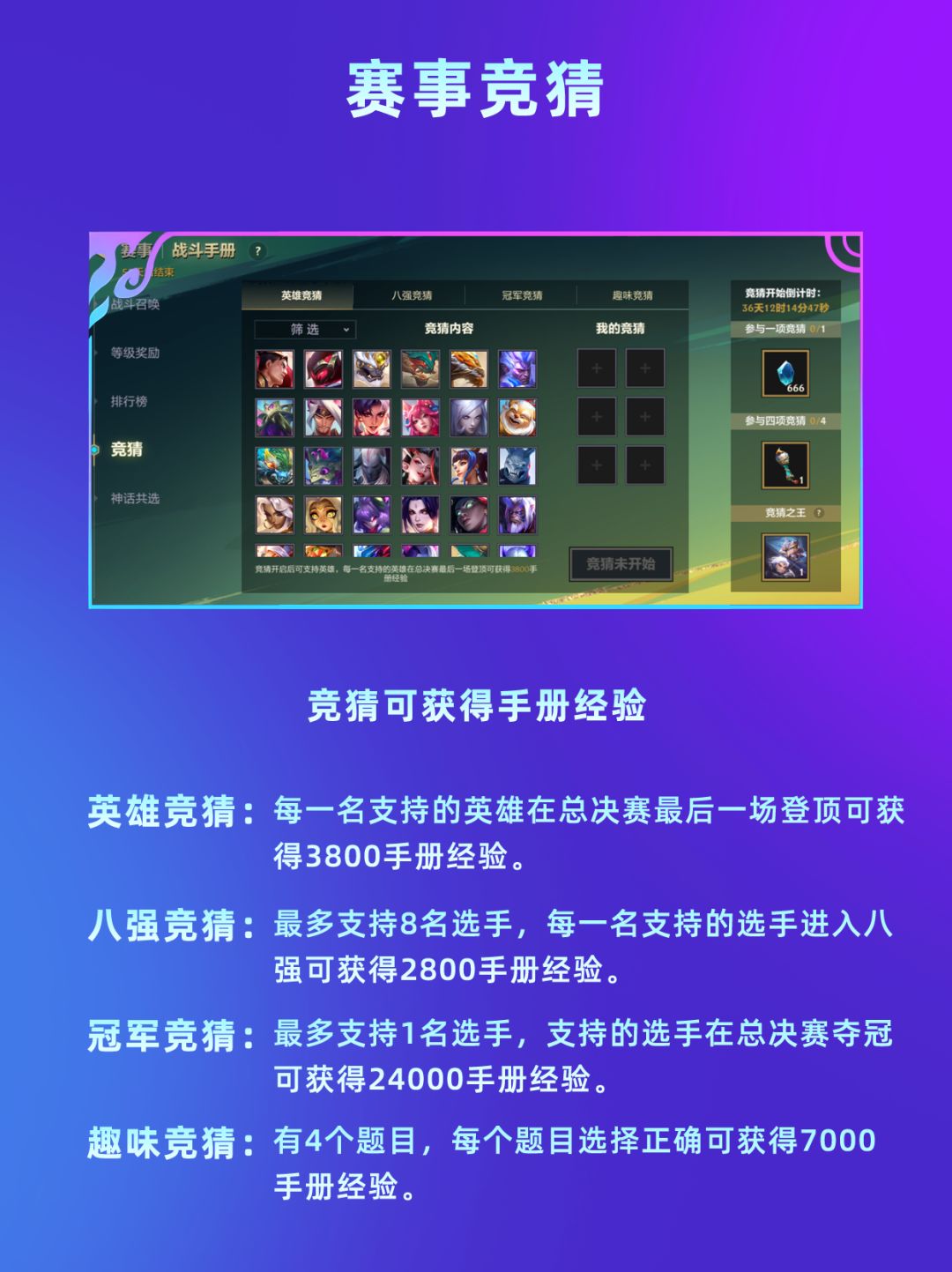 另外还上线了【赛事竞猜】、【神话共选】、【组队升级战斗手册】等活动