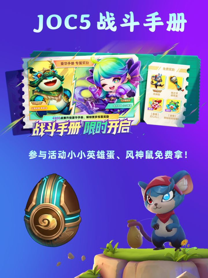 JOC战斗手册开启 免费领小小英雄蛋和风神鼠