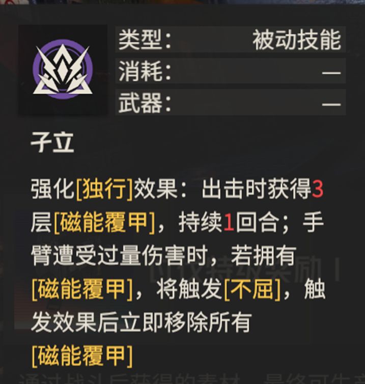 当然,如果结合y2区等级1的效果来看,某些情况下也许这个不屈效果能更大地发挥作用。击破部位战后获得1层被动,再利用这层被动触发不屈,那么效果显然是比单纯地护甲提升要好的多。