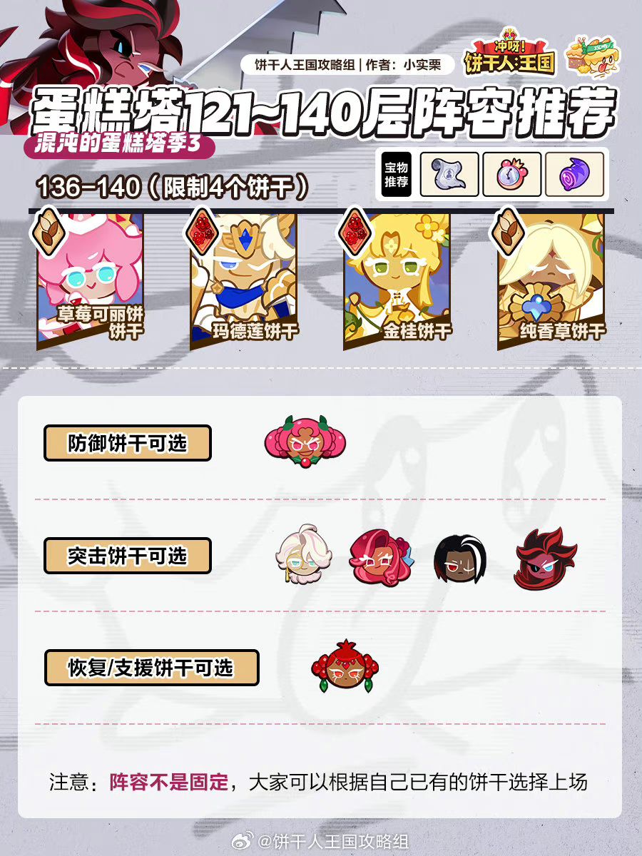 注意:阵容不是固定,大家可以根据自己已有的饼干选择上场