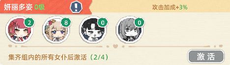 当我们获取到一定数量的女仆时,会与女仆们产生相应的羁绊,大家同心协力勇往直前冒险事半功倍,这时候大家可以点击羁绊按钮,激活羁绊加成获取额外的成长属性哦!